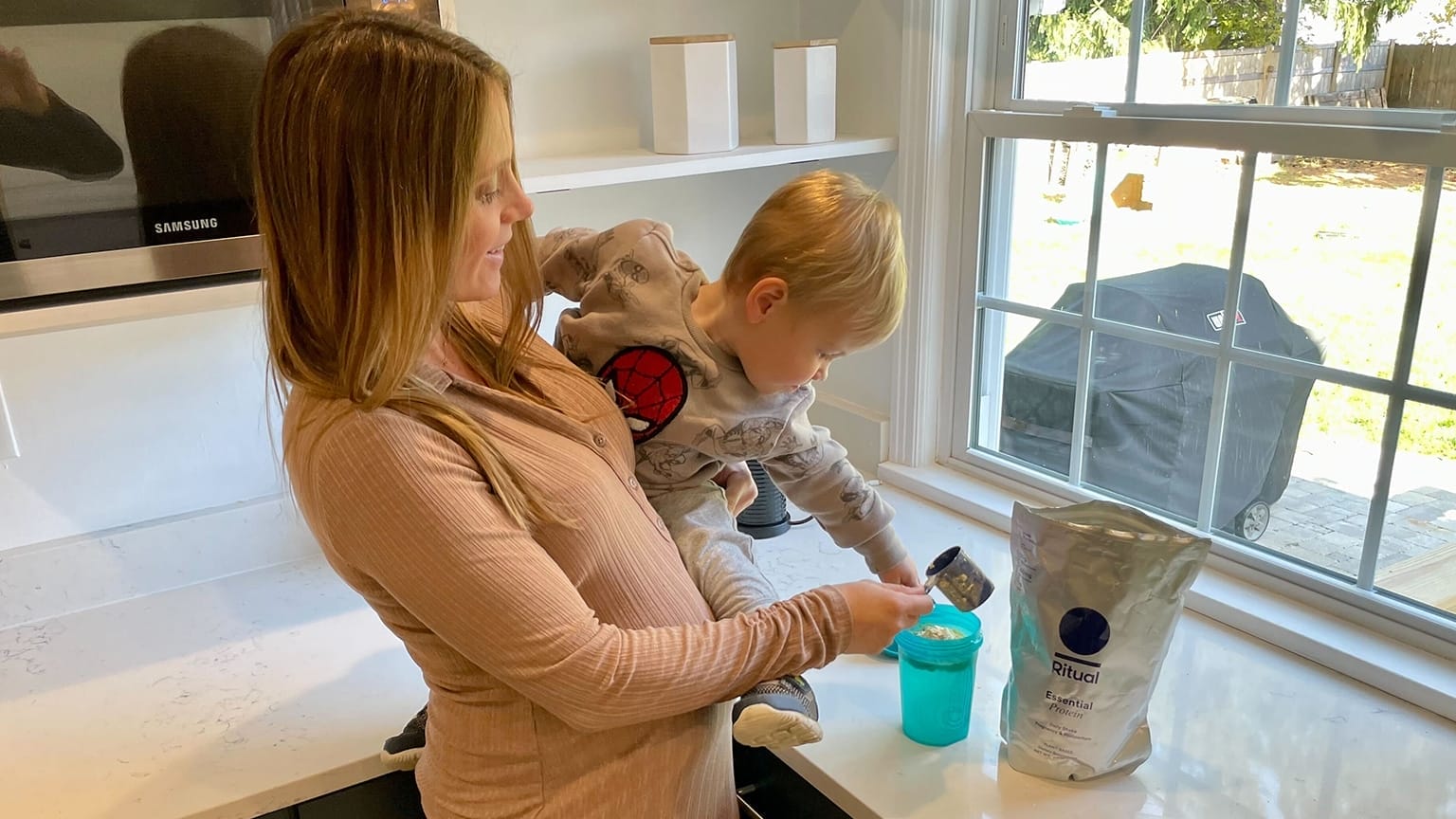 Meet our Mom: My name is Jenna — mom to Michael and Baby M (coming in January 2023). I have used Ritual vitamins throughout my first and second pregnancies and love how their ingredients support both mom and baby. During my second pregnancy, I’ve had a hard time getting enough protein in my diet due to nausea and food aversions, specifically meat. I wanted to try the Ritual Daily Shake Pregnancy & Postpartum Essential Protein to help ensure that I am getting the nutrients and protein needed to support my pregnancy. See below for my Ritual prenatal vitamins reviews.